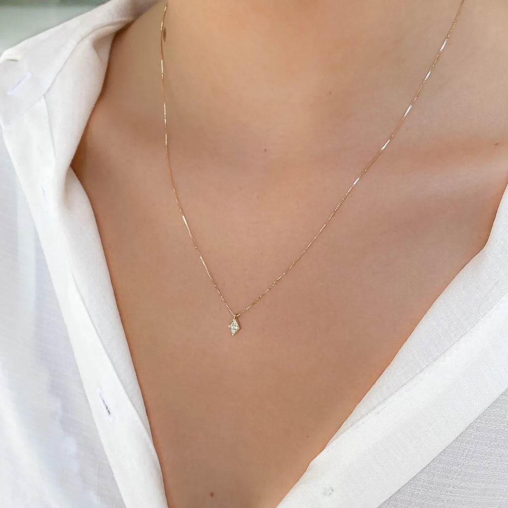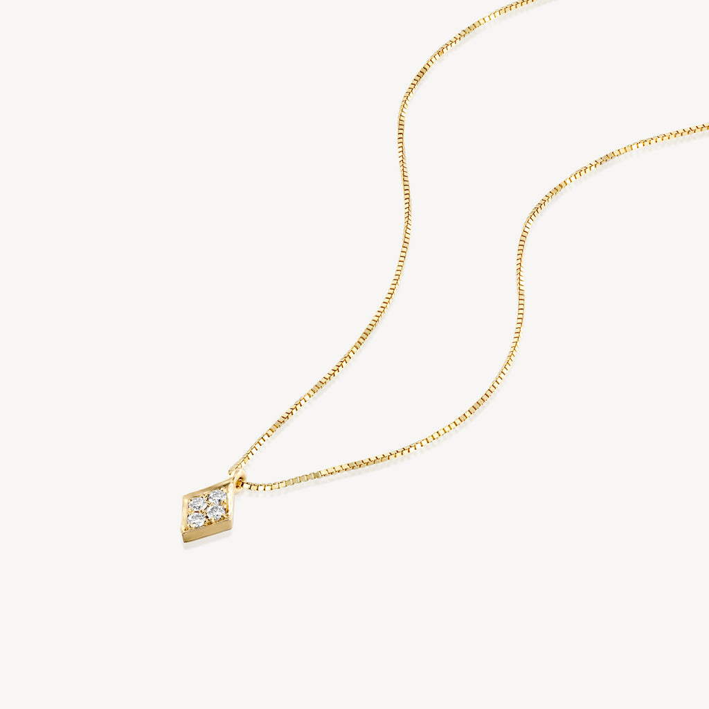 שרשרת עדינה בצורת מעוין בשיבוץ 4 יהלומים קטנטנים שנותנים את לה הנצנוץ המיוחד שלה.