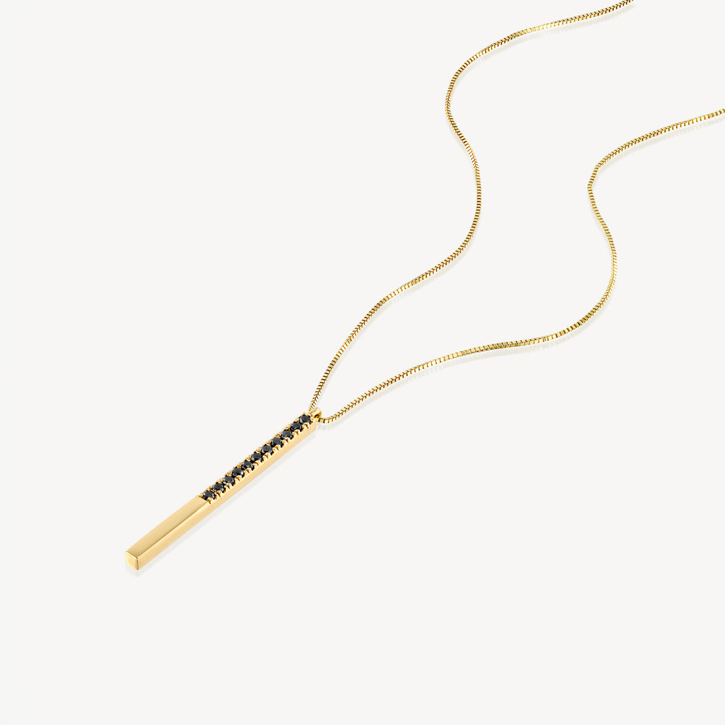 תליון פס עדין התלוי מצווארך ומשובץ ביהלומים שחורים לנוכחות מהפנטת,