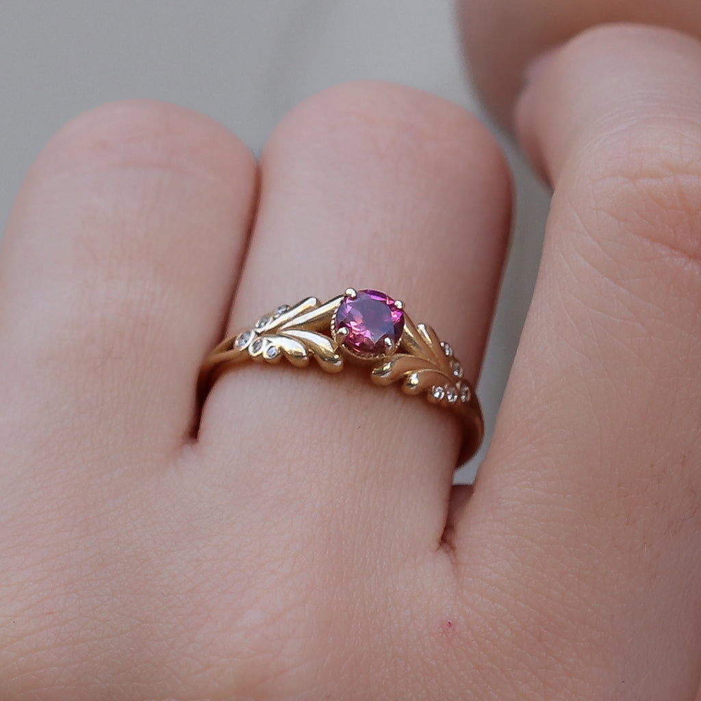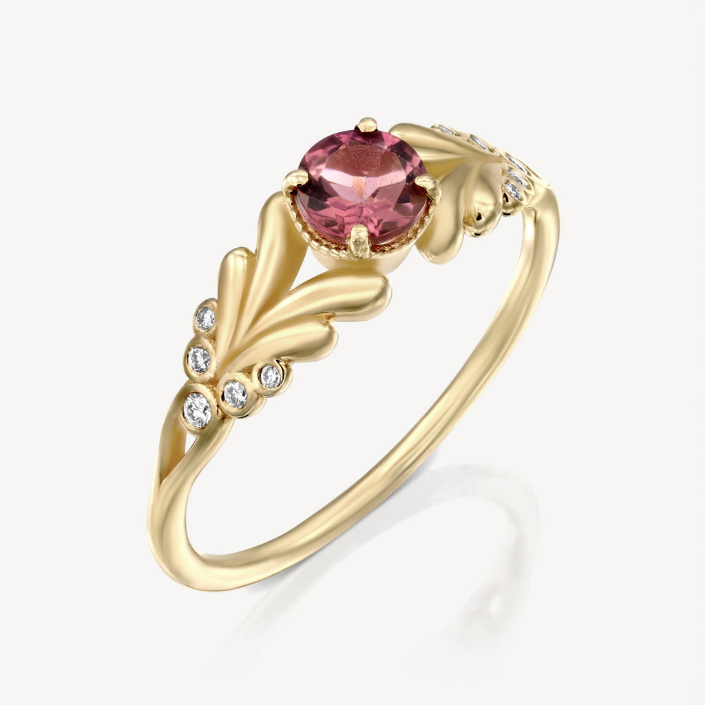 זהב 14K טורמלין ורודה ויהלומים טבעיים