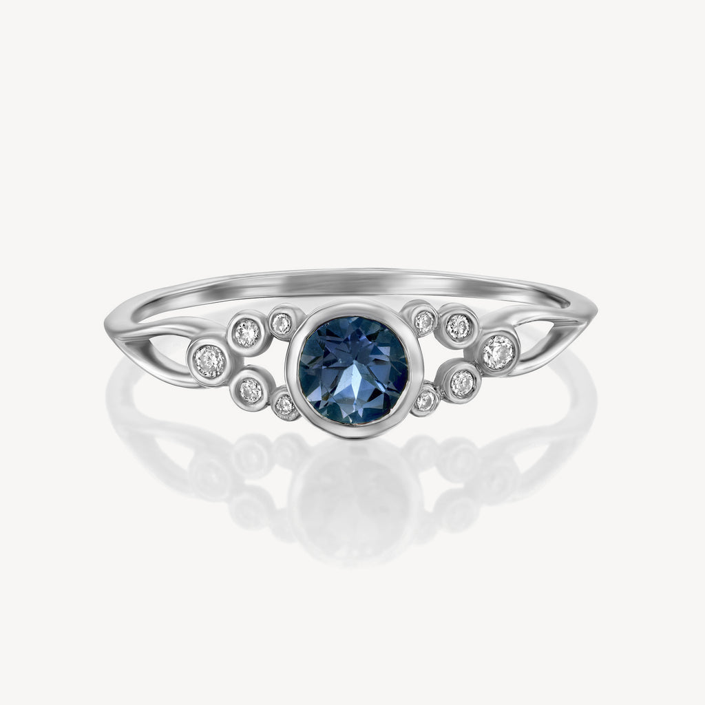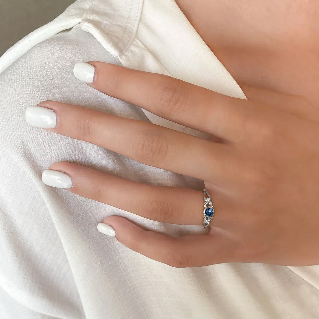 זהב לבן 14K ספיר ויהלומים טבעיים