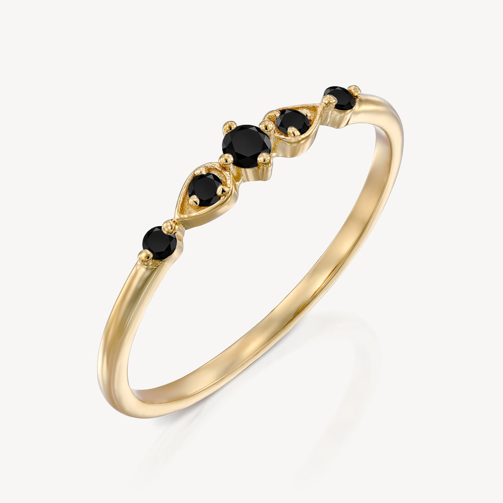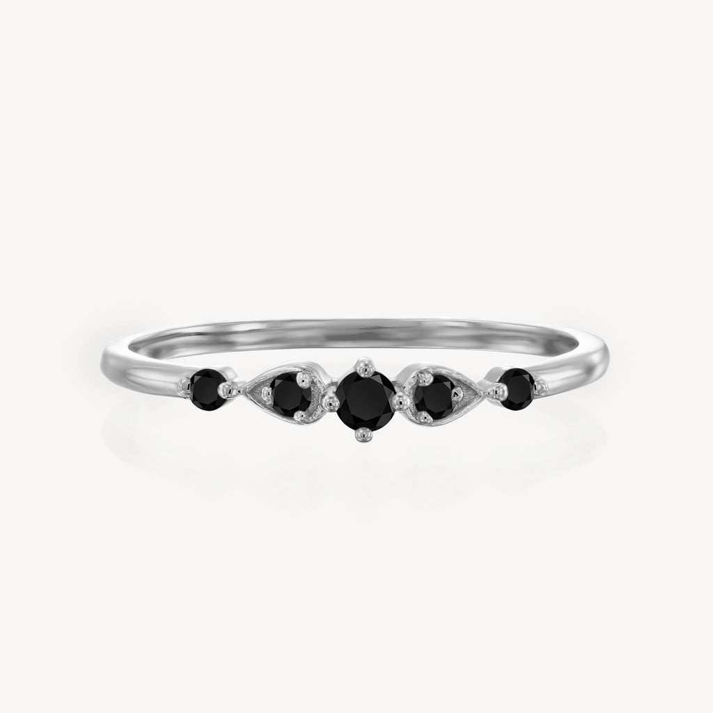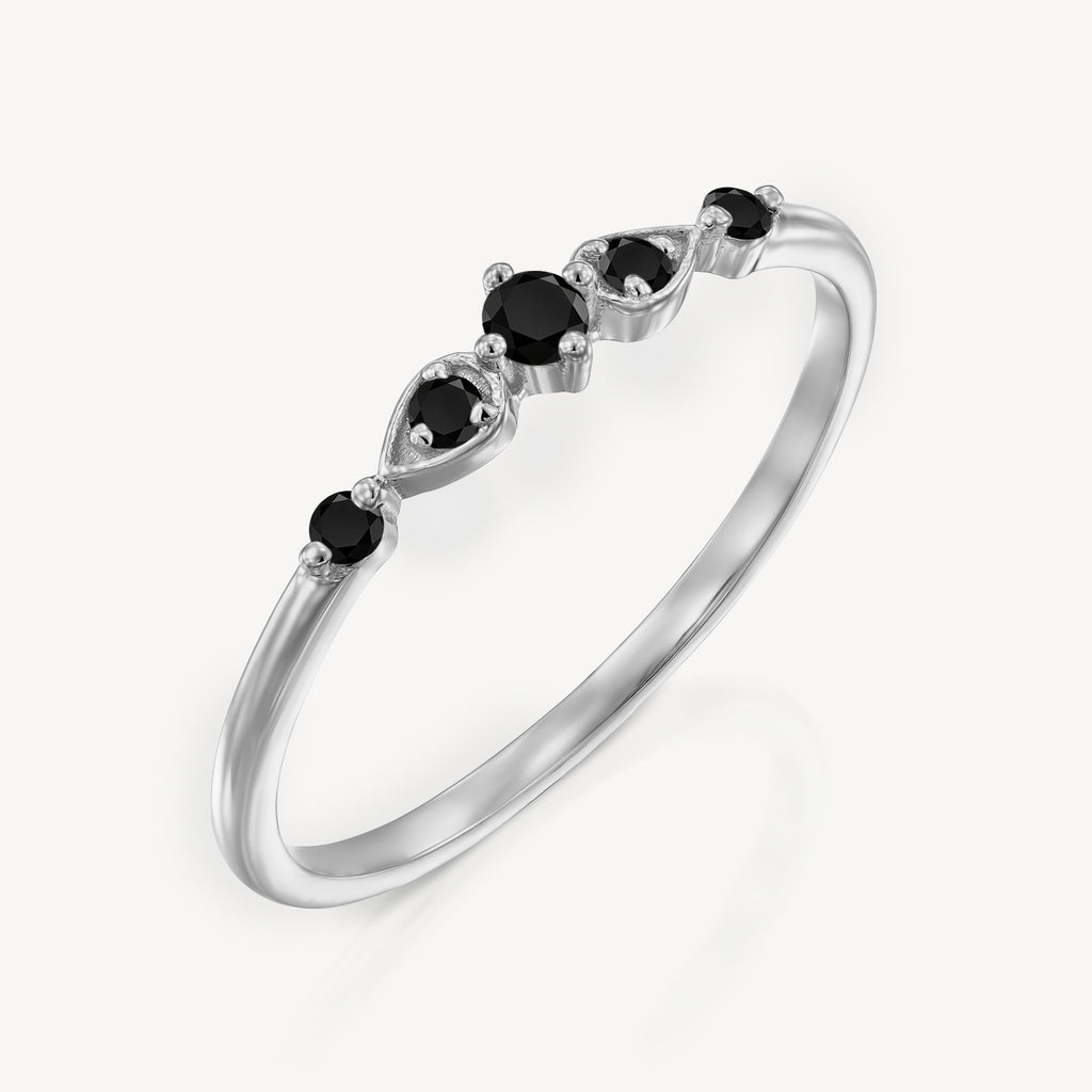 טבעת Anna זהב לבן 14K יהלומים שחורים