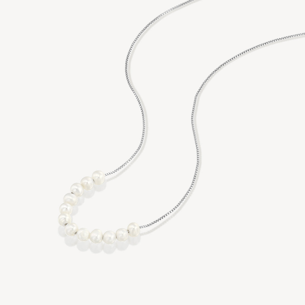 שרשרת זהב לבן 14K | פנינים טבעיות