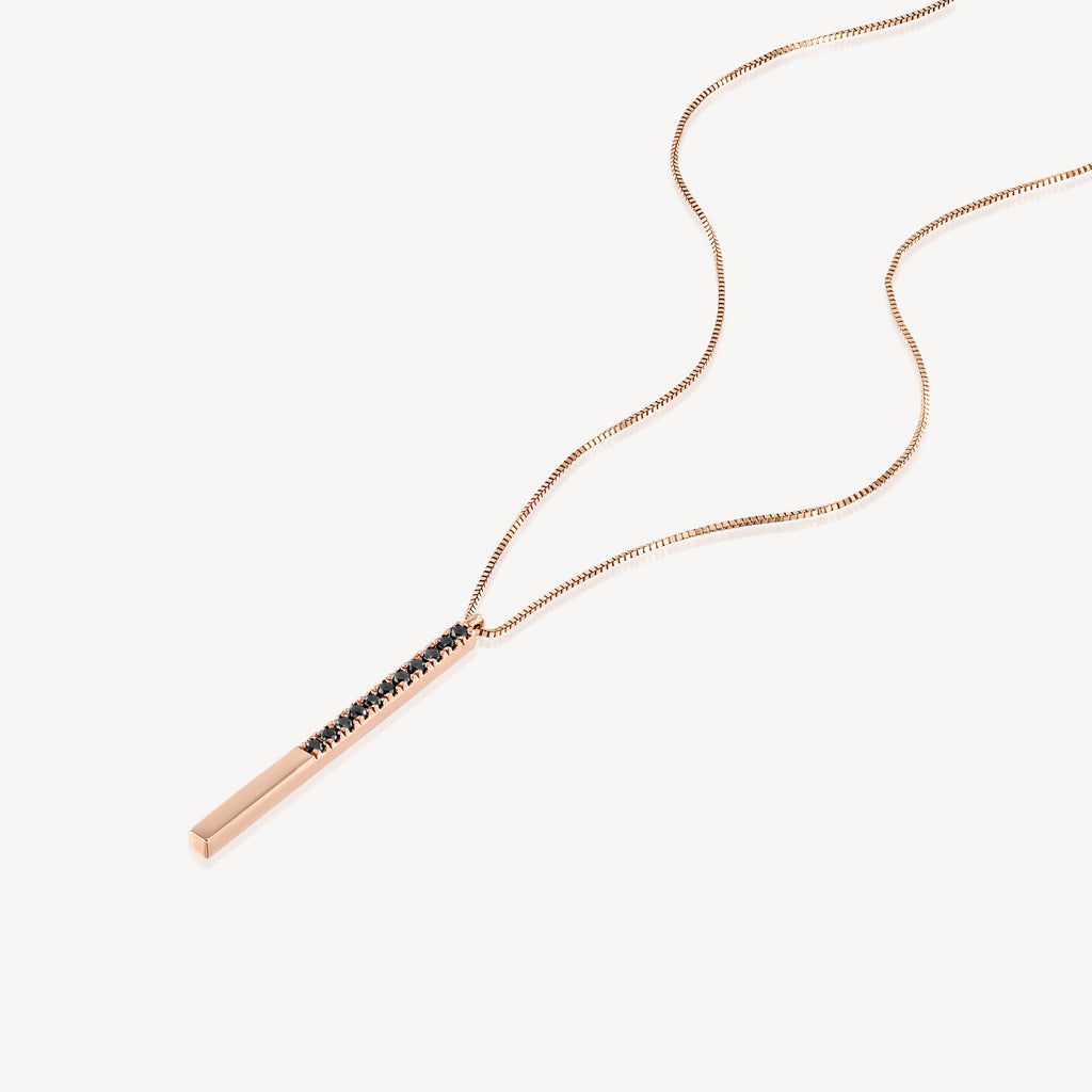 תליון פס עדין התלוי מצווארך ומשובץ ביהלומים שחורים לנוכחות מהפנטת,