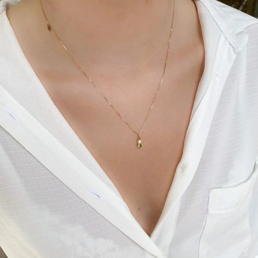 זהב 14K טורמלין ירוקה ויהלום טבעי